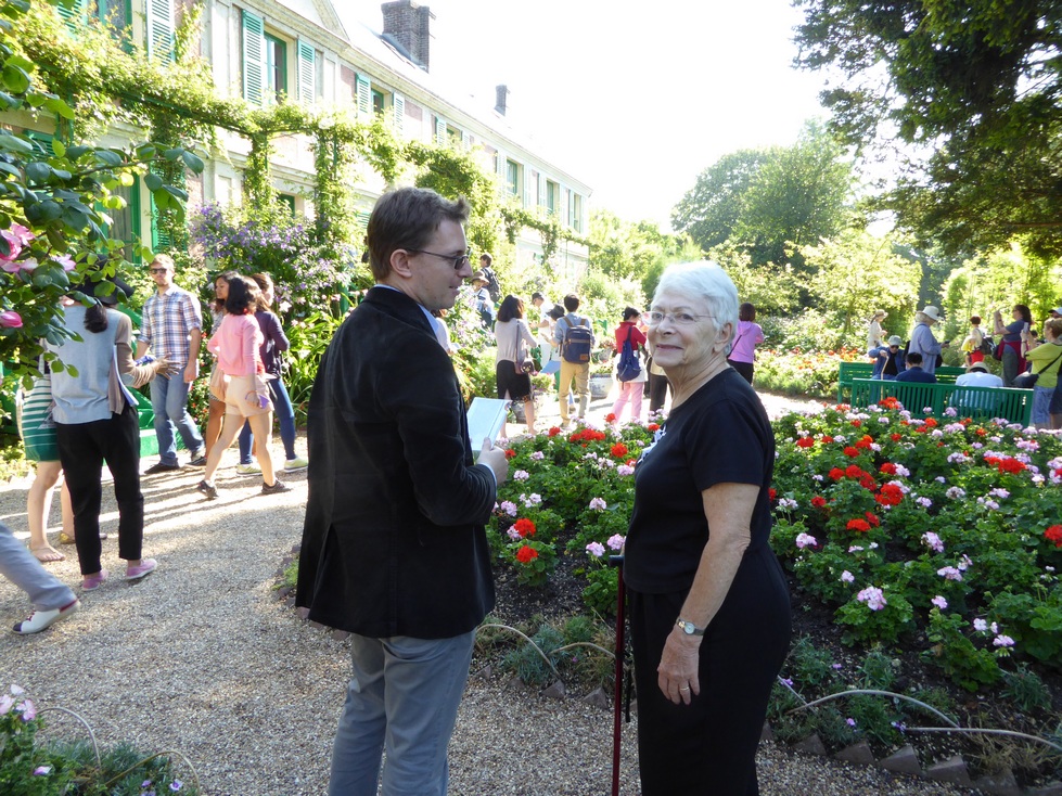 The plan for Friday was to go to Giverny - the home and gardens of Monet. It's about a 45 minute ride from Paris and on the way our guide, Mikael Fabre, gave us some background on Monet. The house has been restored to what it must have been when Monet was living there. Except that the walls are covered with copies of his paintings - most of the real ones are in museums. I stayed on the first floor as I thought it would be too difficult to tote my oxygen up and down the stairs. While Granny and Mikael took the second floor tour, I rested in the kitchen and watched the other tourists.