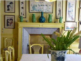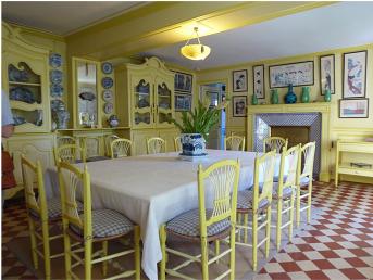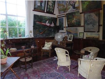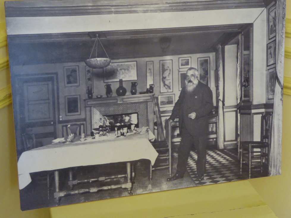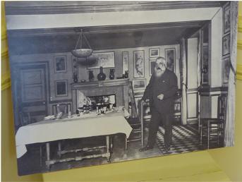 Look at the picture of Monet in his dining room in front of the fireplace. All the objects are in the same place as they were in the photo.