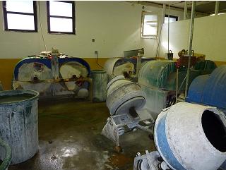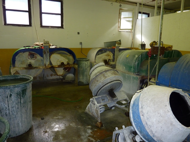 The beads are tumbled and polished at different stages of the process. This is done in what looks like cement mixers.