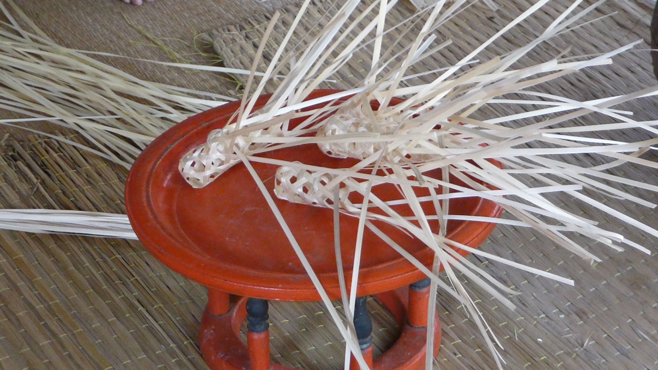 When our meal was finished, we finished weaving the little baskets that had been started by our hosts. When they were done, they were each filled with 3 clementines.
