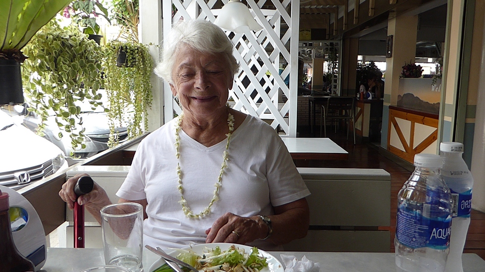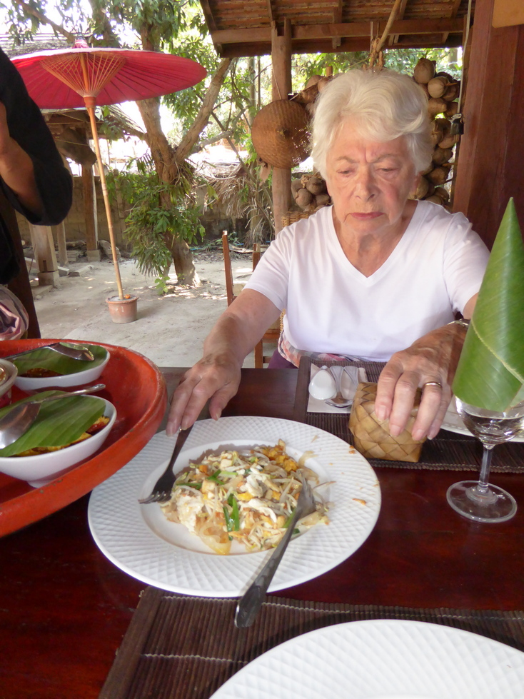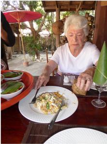 Granny enjoying her lunch after the temples.