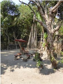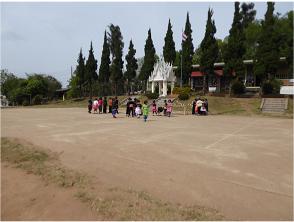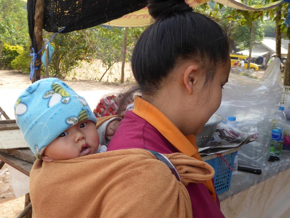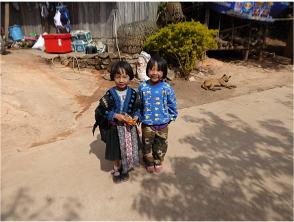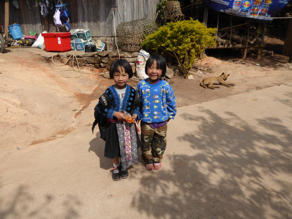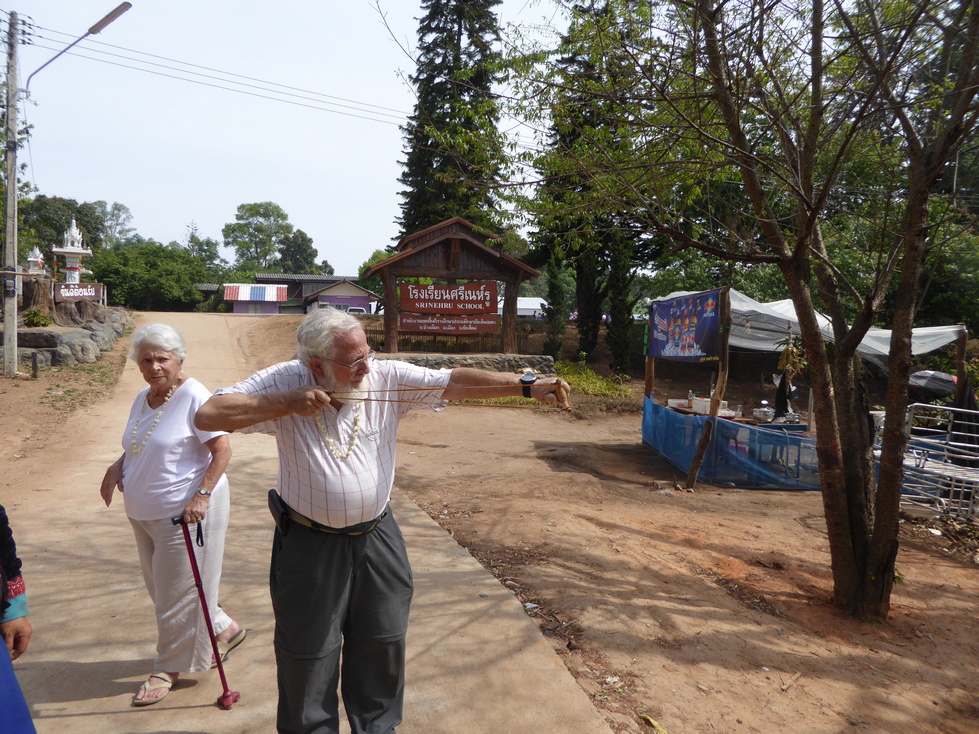 First stop in the Hmong village was the Srinehru school. We sat on the steps of the main building for a few minutes and watched the children getting ready to play a game. Then it was off to see the village. While we were wandering we came across a man shooting a slingshot. Being an EXPERT with the slingshot from my childhood days, I naturally had to give it a try. Didn't do too badly if I say so myself.
