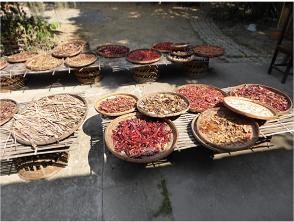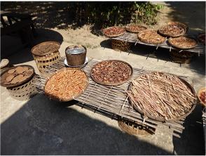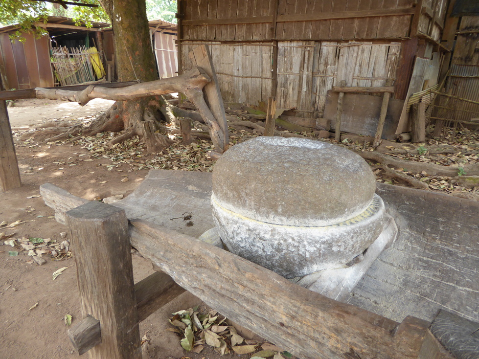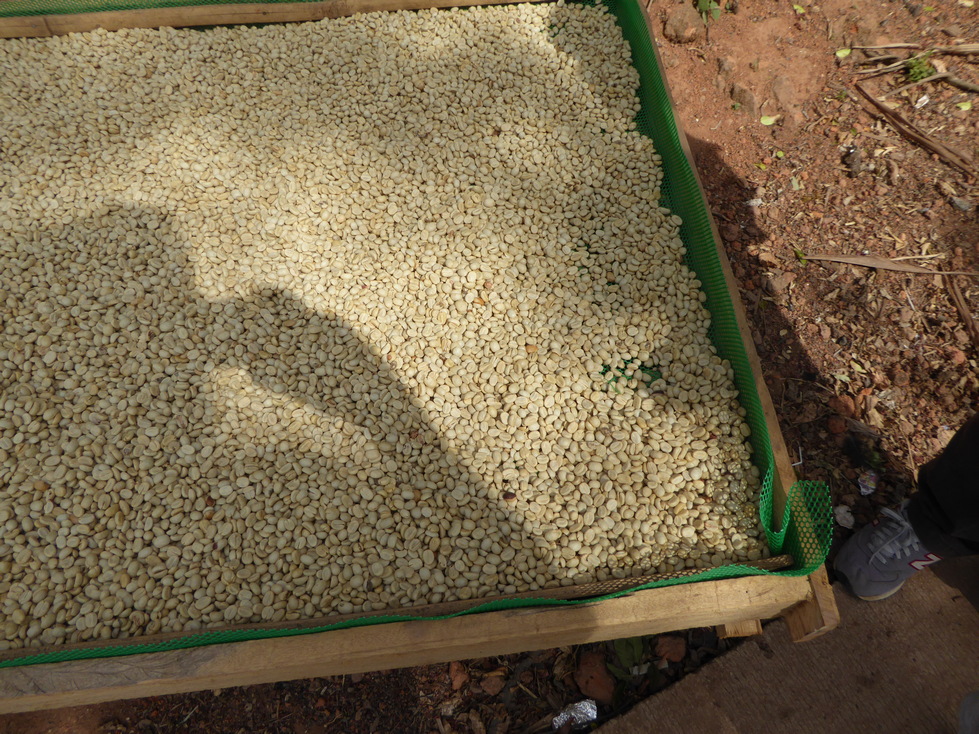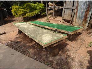 Coffee is one of the local products. We had passed a coffee "farm" on our way to the village and here in the village we see the coffed drying. Above right is their "up-to-date" grain grinder.
