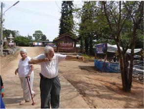 After lunch we were off to visit an Hmong village. As the crow flies, it was about 5 miles. However we couldn't get there as the crow flies. Instead we had to use the tradional way - roads. It was about a 20 mile drive on good road to the Wat Doi Suthep temple. There we had to change vehicles because our van would not be able to traverse the road? to the village.