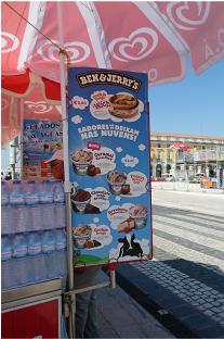 We went down to the square next to the river. On the side of the squae opposite the river, is the "Gate to the CIty". Lisbon is a port city and is a stop for many cruise boats. Later in the afternoon, we did see one of the large cruise ships and got caught up in the crowd of "cruissers" that had come ashore for a "shore visit". I can't believe we came all the way to Lisbon to find a "Ben & Jerry's ice cream.