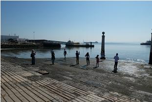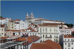We started our exploration of Lisbon with our guide, Paula, taking us by taxi to a small park on top of one of the many hills of Lisbon. Lisbon has a LOT of hills and some are quite steep. In some places if reminds one of San Francisco. The park offered us a nice panoramic view of the city. On the way to the park, we passed through one of the main squares where we saw the Monument to the restorers. A couple of sights we only saw from a distance were the statue of Christ and the Sai Jorge Castle. The statue was inspired by the similar statue in Rio. It also reminds us that Brazil was once a Portugese colony. Unfortunately, we didn't get to the castle. Maybe next time.