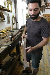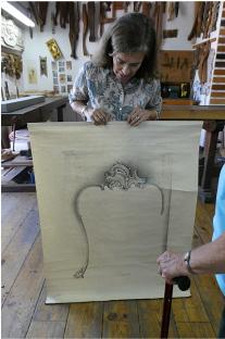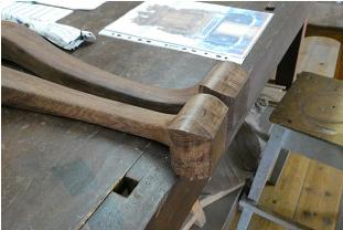 Another reproduction project. This time we are seeing some ornate legs being made for a table. The drawing is on the left. Next the starting pieces of wood. Carving the foot and finally a the foot taking shape.